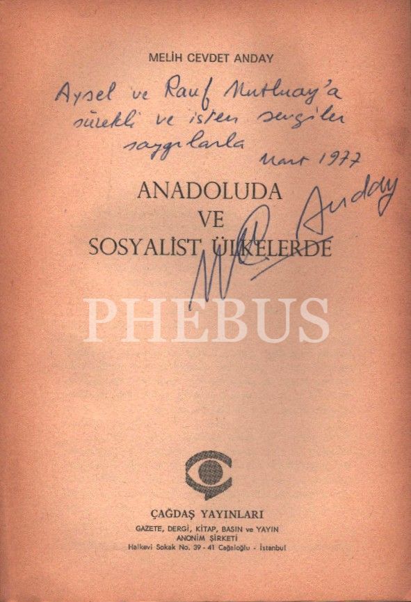 Melih Cevdet Anday´dan ithaflı ve imzalı ANAOLUDA VE SOSYALİST ÜLKELERDE, Çağdaş Yayınları, İstanbul - 1977, 271 s., 14x20 cm