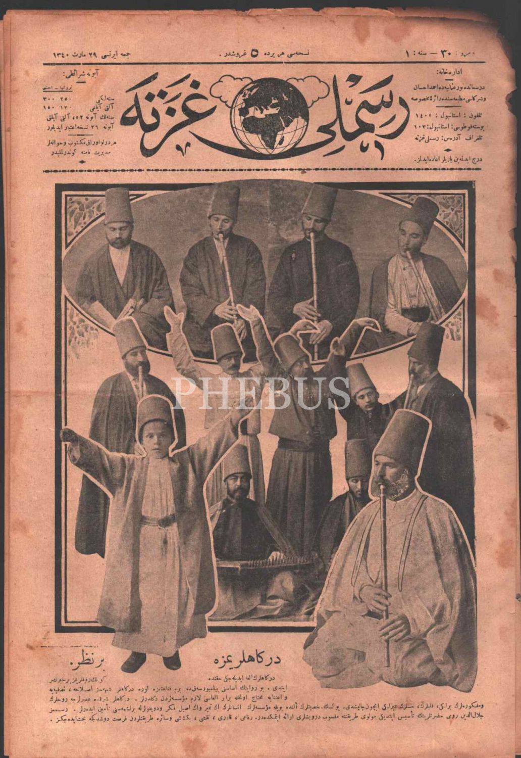 Her şeyden bahseden terakkiperver, siyasi RESİMLİ GAZETE´nin Mevlevi görselli 30. sayısı, 29 Mart 1340, 27x40 cm