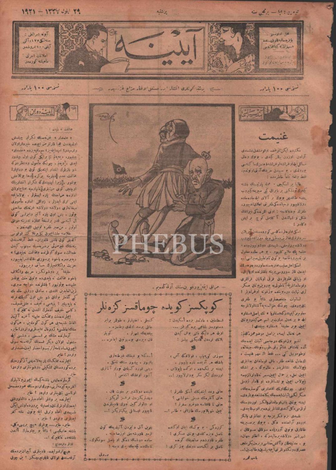 Mizah gazetesi AYİNE´nin 7. sayısı, 29 Eylül 1921, 28x39 cm
