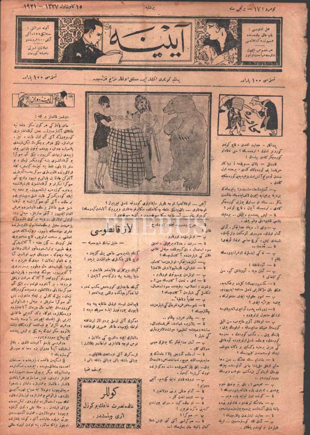 Mizah gazetesi AYİNE´nin 17. sayısı, 15 Kanunievvel 1921, 28x39 cm