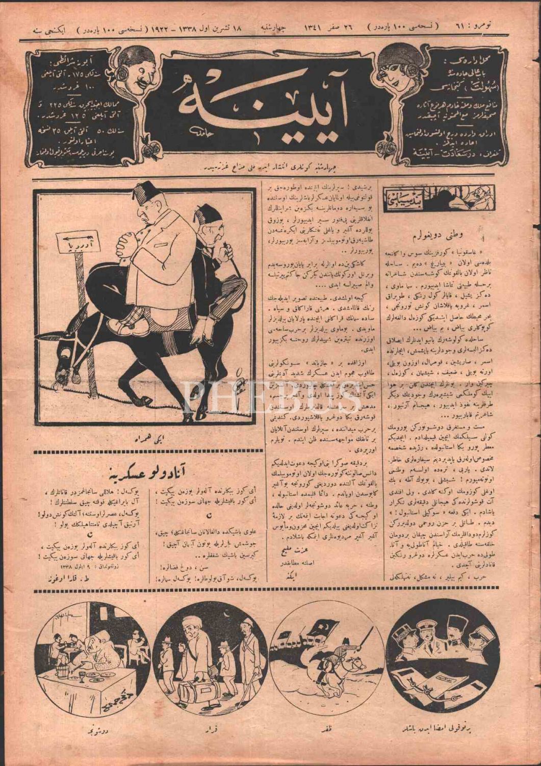 Mizah gazetesi AYİNE´nin 61. sayısı, 19 Teşrinievvel 1922, 28x39 cm