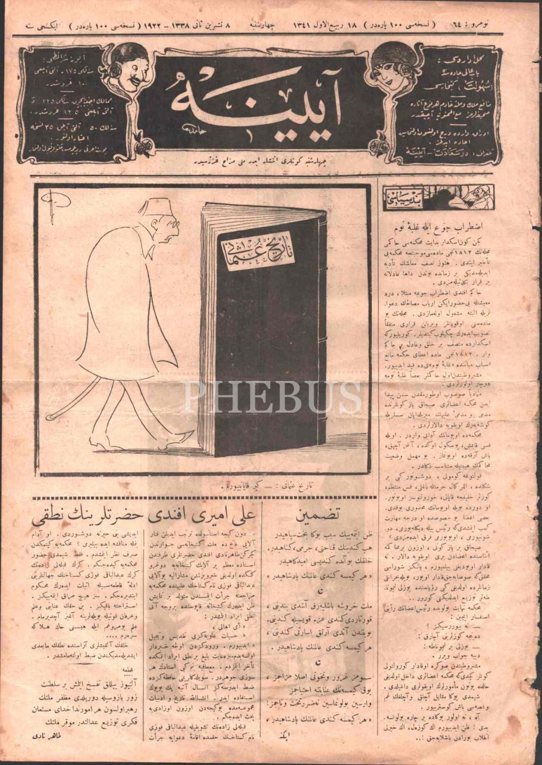 Mizah gazetesi AYİNE´nin 64. sayısı, 8 Teşrinisani 1922, 28x39 cm