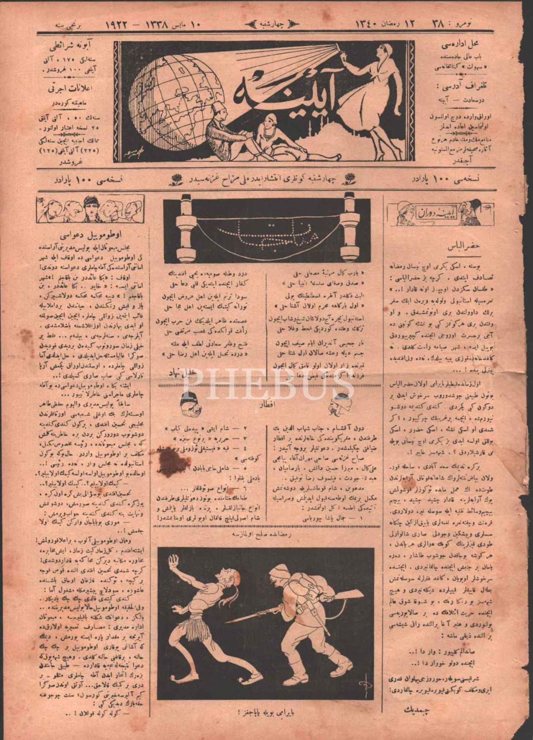 Mizah gazetesi AYİNE´nin 38. sayısı, 10 Mayıs 1922, 28x39 cm