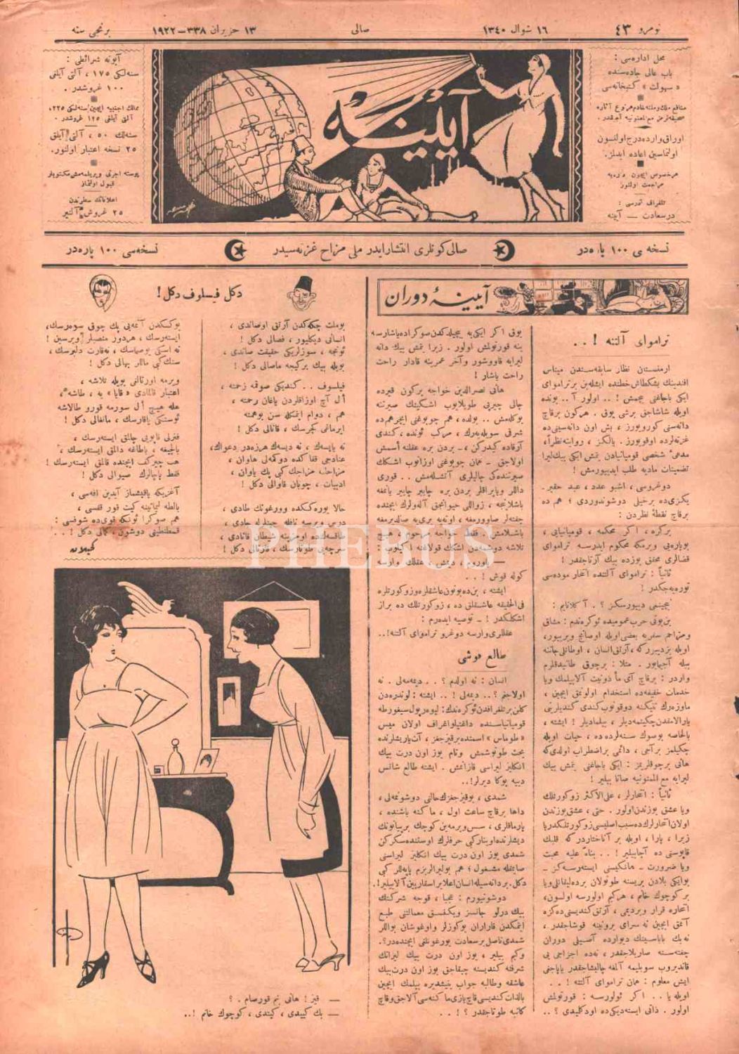 Mizah gazetesi AYİNE´nin 43. sayısı, 13 Haziran 1922, 28x39 cm