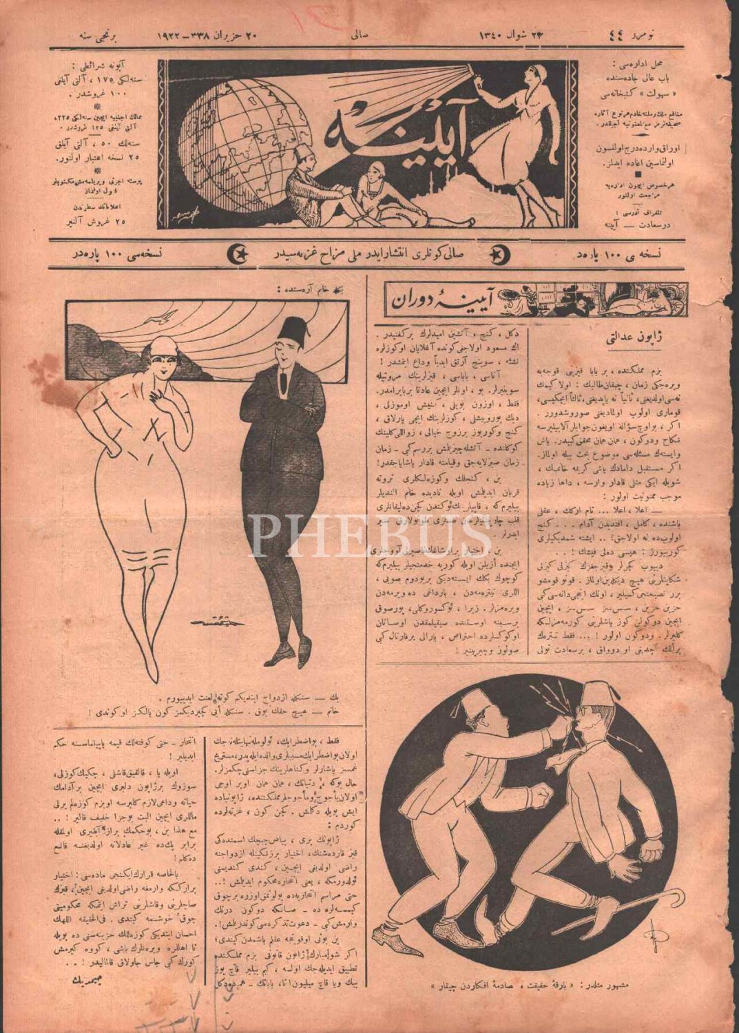 Mizah gazetesi AYİNE´nin 44. sayısı, 20 Haziran 1922, 28x39 cm