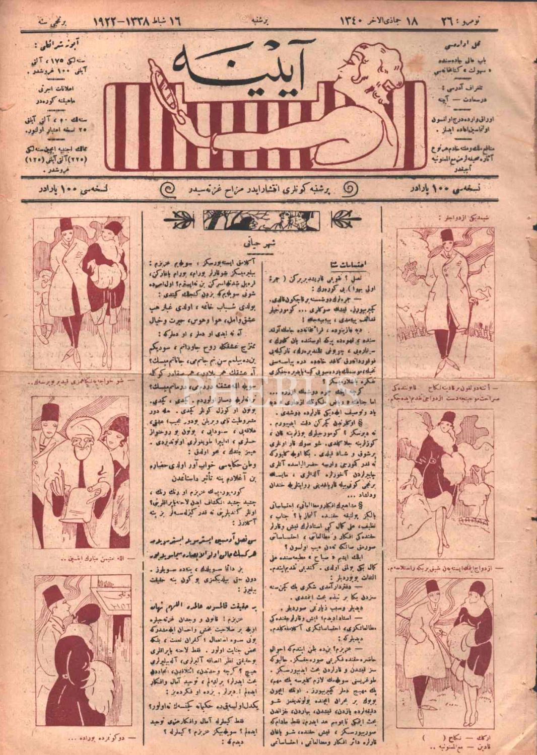 Mizah gazetesi AYİNE´nin 26. sayısı, 16 Şubat 1922, 28x39 cm