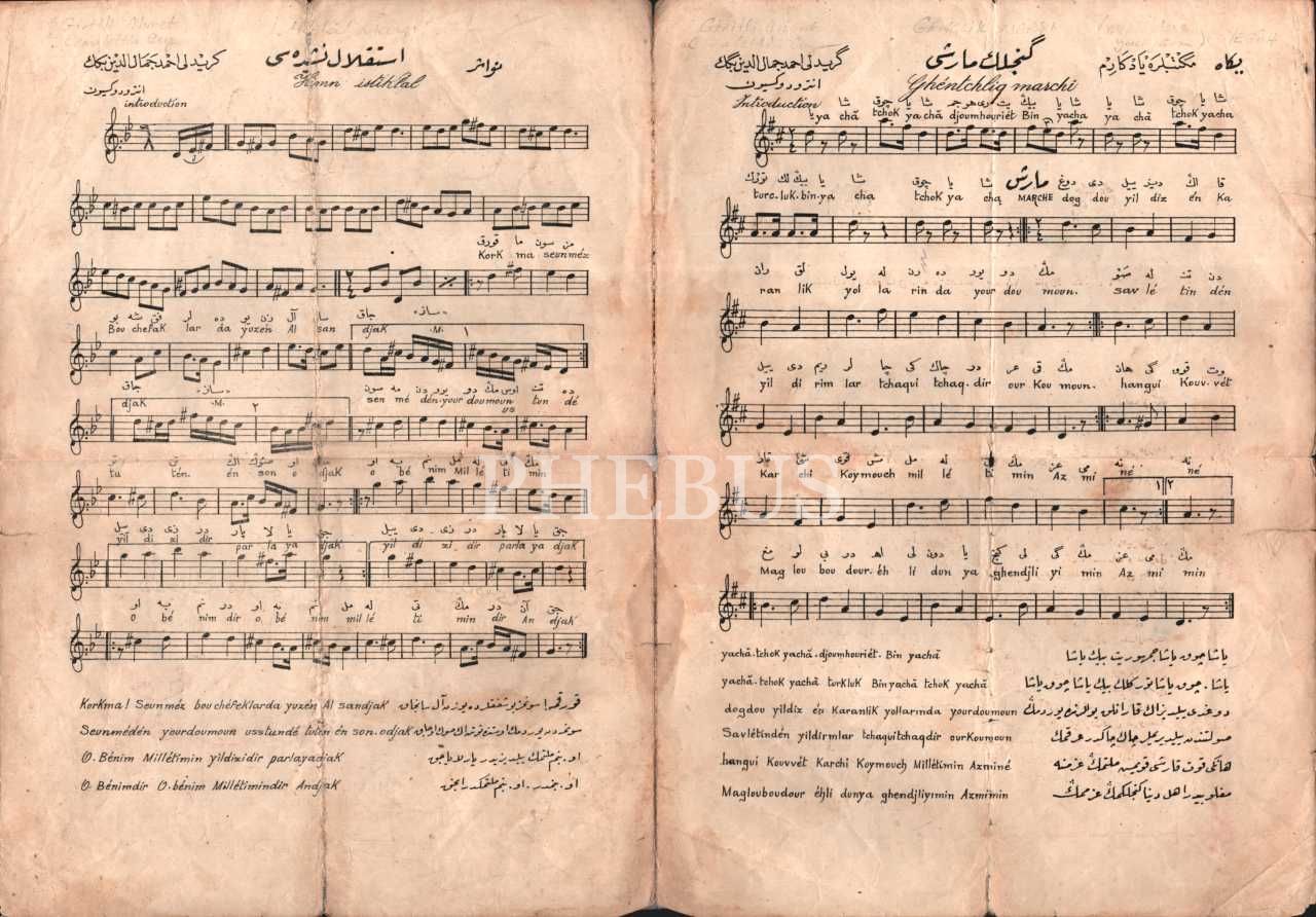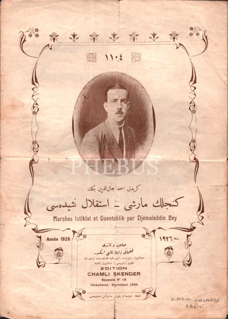 Kudmanizâde Şamlı İskender yayınlarından Gençlik Marşı ve İstiklâl Marşı bestesi nadir nota, Giritli Ahmet Cemalleddin, 1926, 21x28 cm