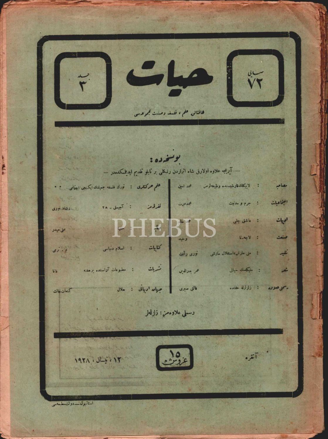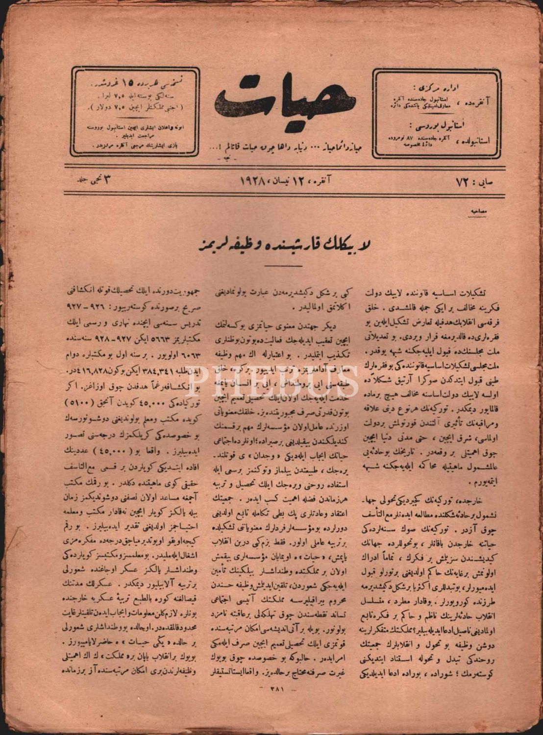 HAYAT Mecmuası´nın içerisinde "Milli Marş İstiklâl Marşı" başlıklı yazısı bulunan 72. sayısı, 12 Nisan 1928, 25x35 cm