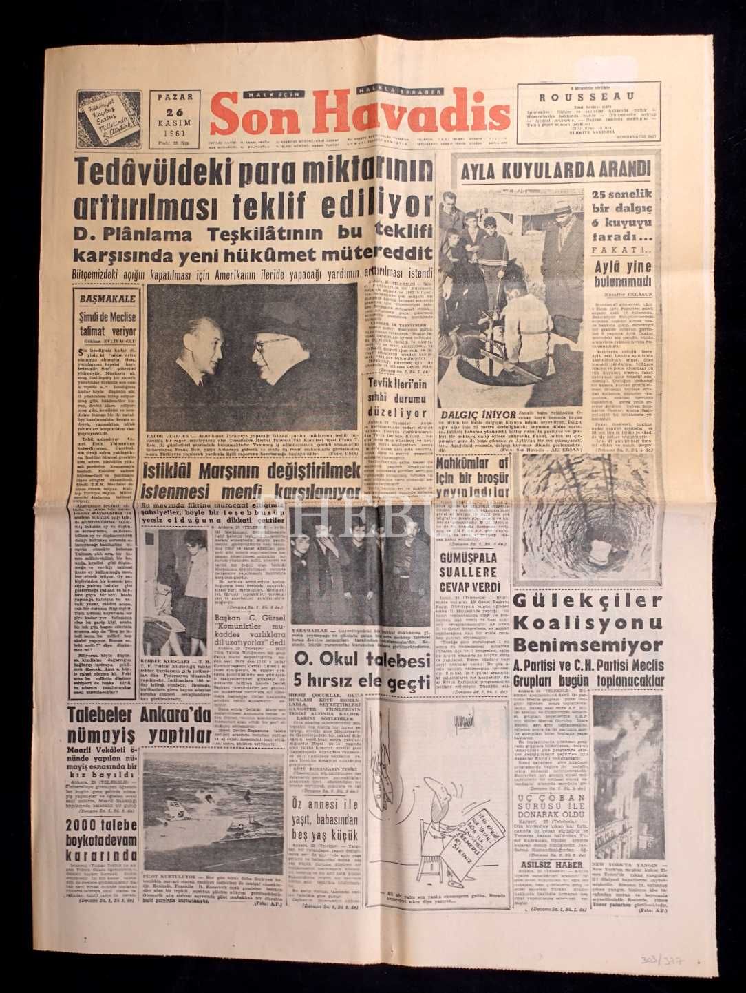 SON HAVADİS gazetesinin "İstiklâl Marşı´nın Değiştirilmek İstenmesi Menfî Karşılanıyor" başlıklı haberin yer aldığı 26 Kasım 1961 tarihli sayısı, 43x60 cm