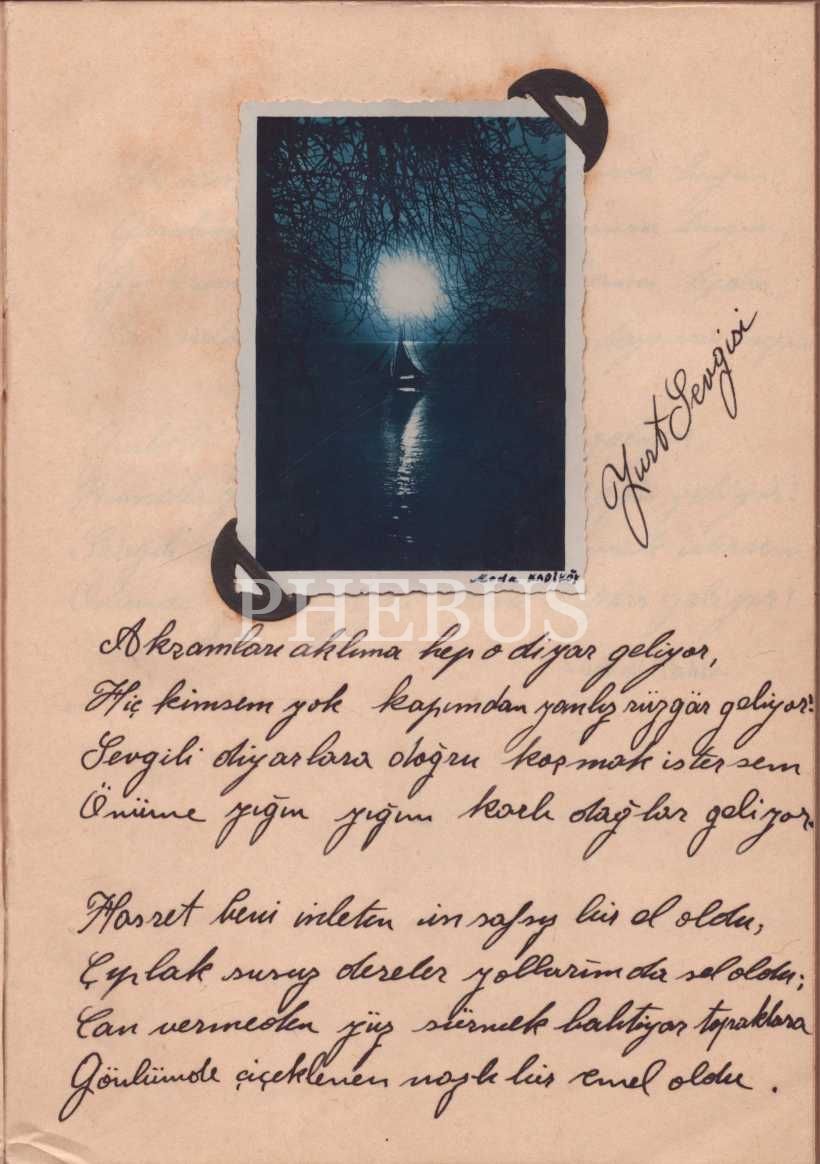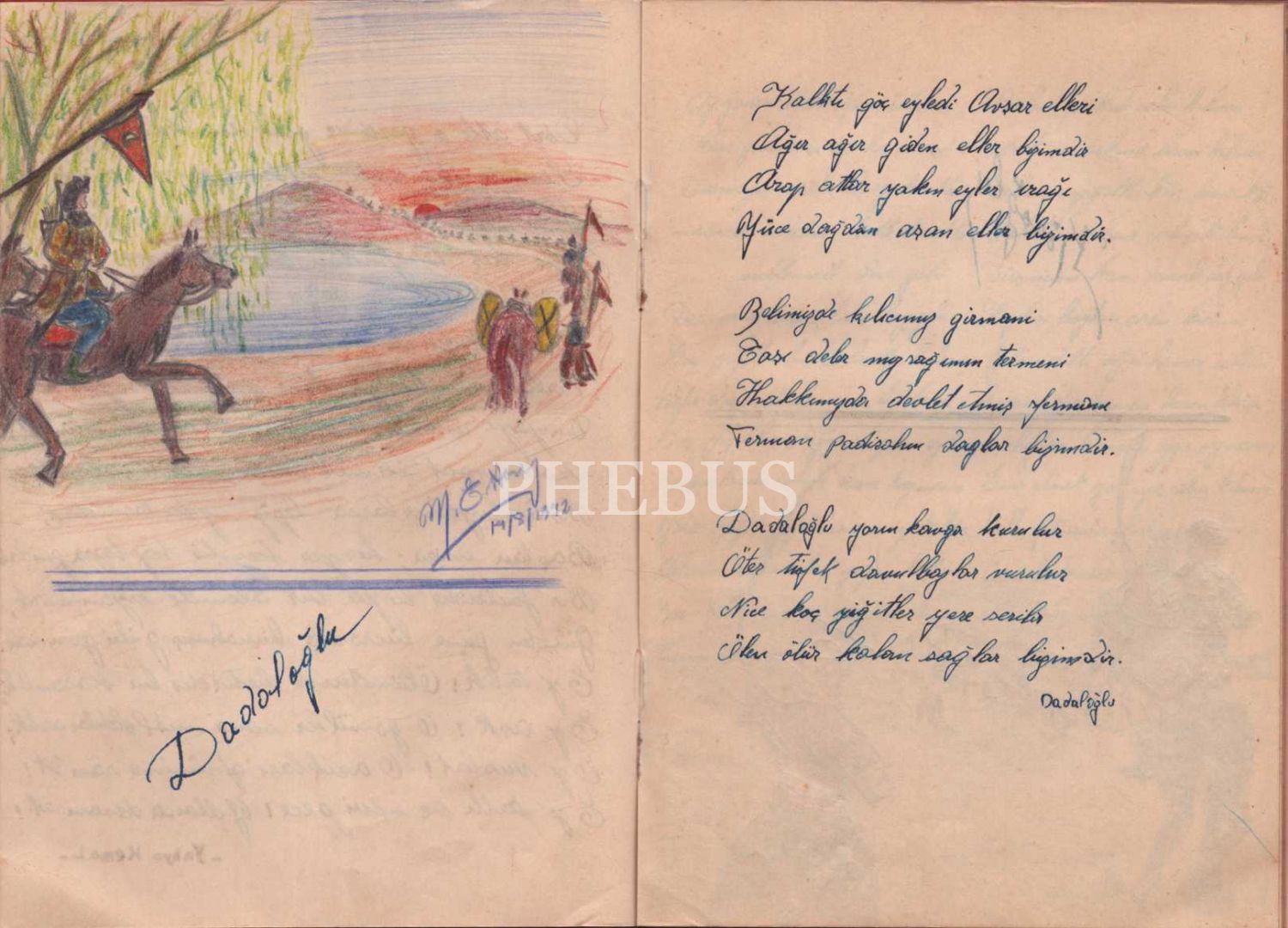 İstiklâl Marşı´nın süslediği, Yahya Kemal, Dadaloğlu, Köroğlu gibi ozanların yazılarının yer aldığı Muzaffer Erturan´a ait defter, Eylül 1940, 14 s., 14x20 cm