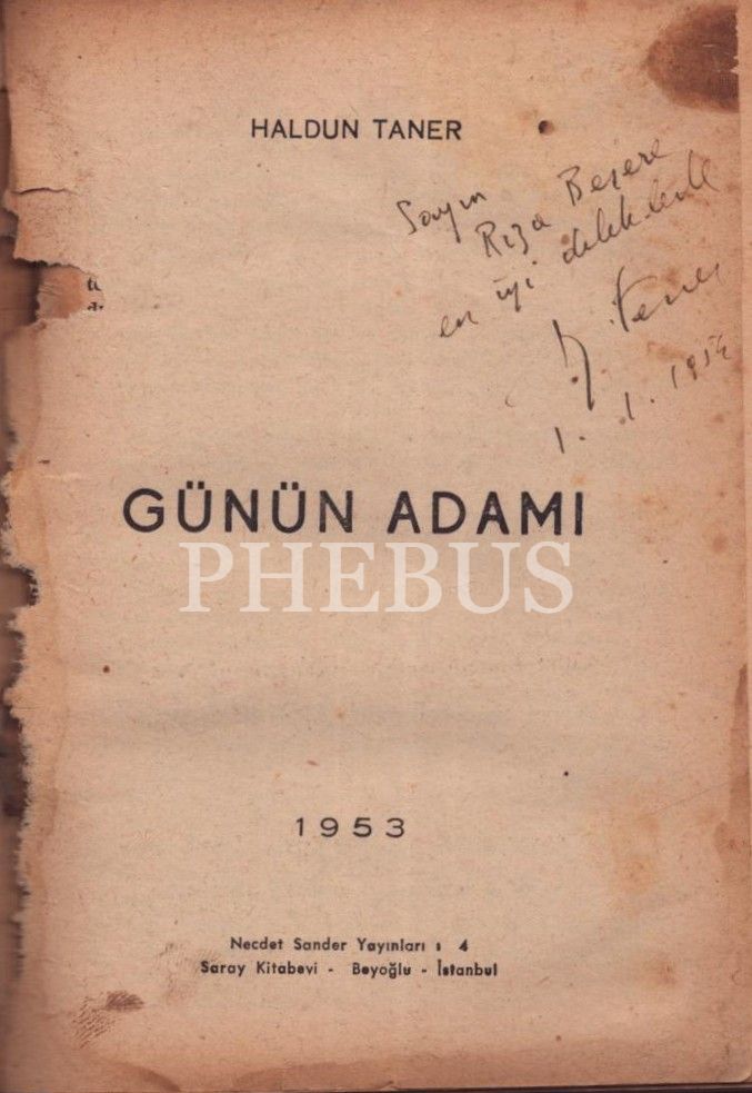 GÜNÜN ADAMI, Haldun Taner, Necdet Sander Yayınları, 1953, 127 sayfa, 12x18 cm, İTHAFLI VE İMZALI