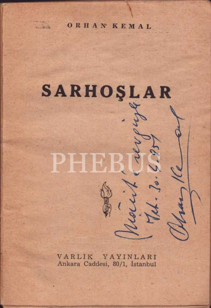 SARHOŞLAR, Orhan Kemal, Varlık Yayınları, İstanbul Nisan 1951, 92 sayfa, 11x16 cm, İTHAFLI VE İMZALI
