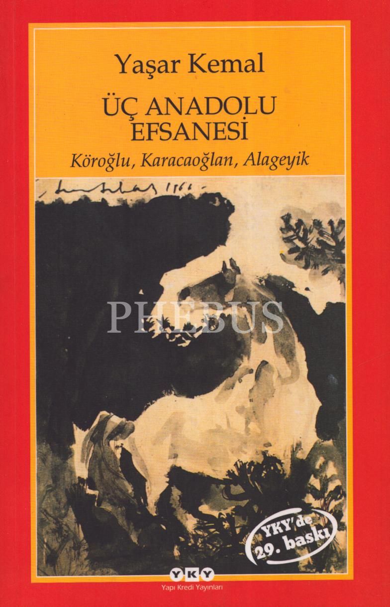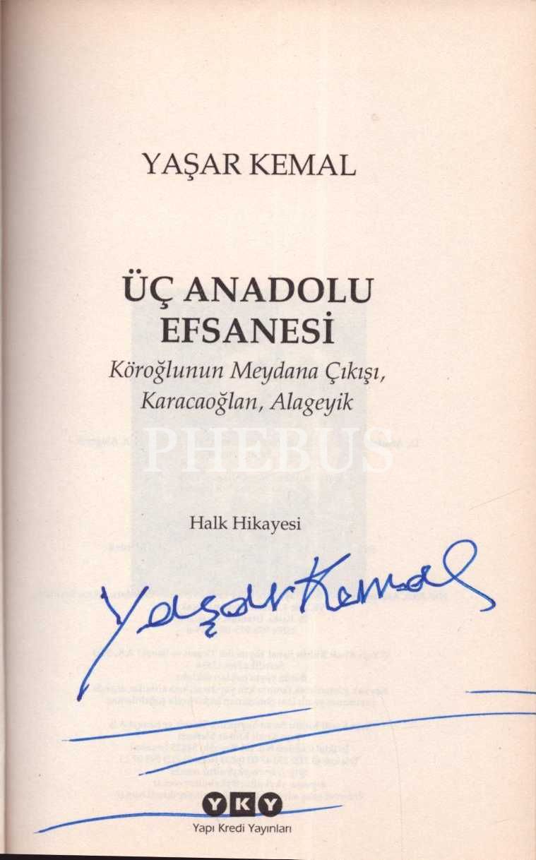 ÜÇ ANADOLU EFSANESİ (Köroğlu, Karacaoğlan, Alageyik), Yaşar Kemal, Yapı Kredi Yayınları, 222 sayfa, 13x21 cm, İMZALI