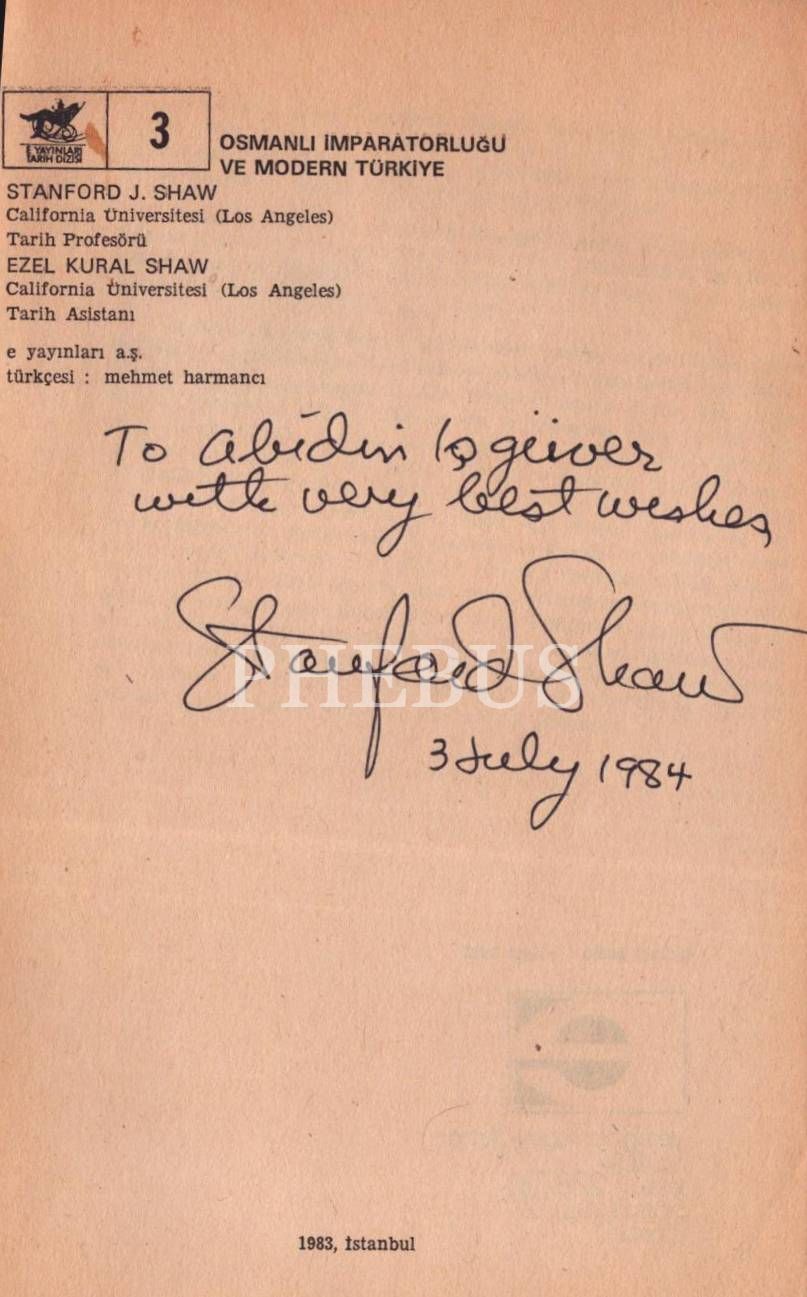 İthaf, "To Abidin İşgüver? with very best wishes. Stanford J. Shaw. 3 July 1984" şeklindedir.