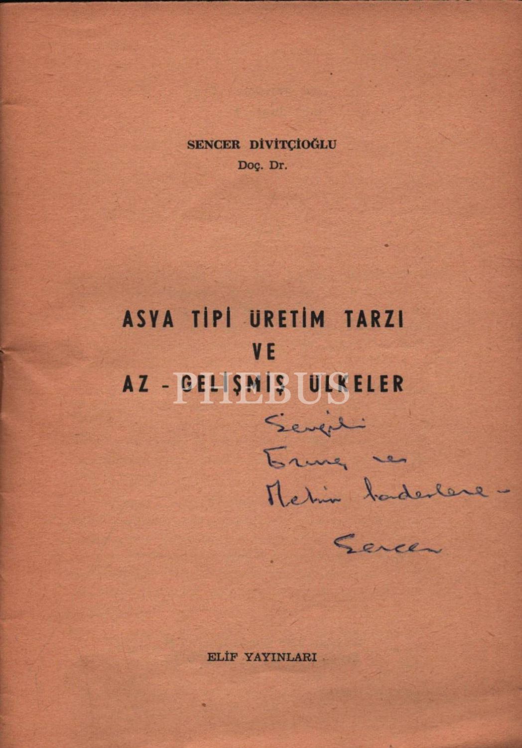 ASYA TİPİ ÜRETİM TARZI VE AZ - GELİŞMİŞ ÜLKELER (Deneme), Sencer Divitçioğlu, Elif Yayınları, İstanbul - 1966, 30 sayfa, 14x20 cm, İTHAFLI VE İMZALI