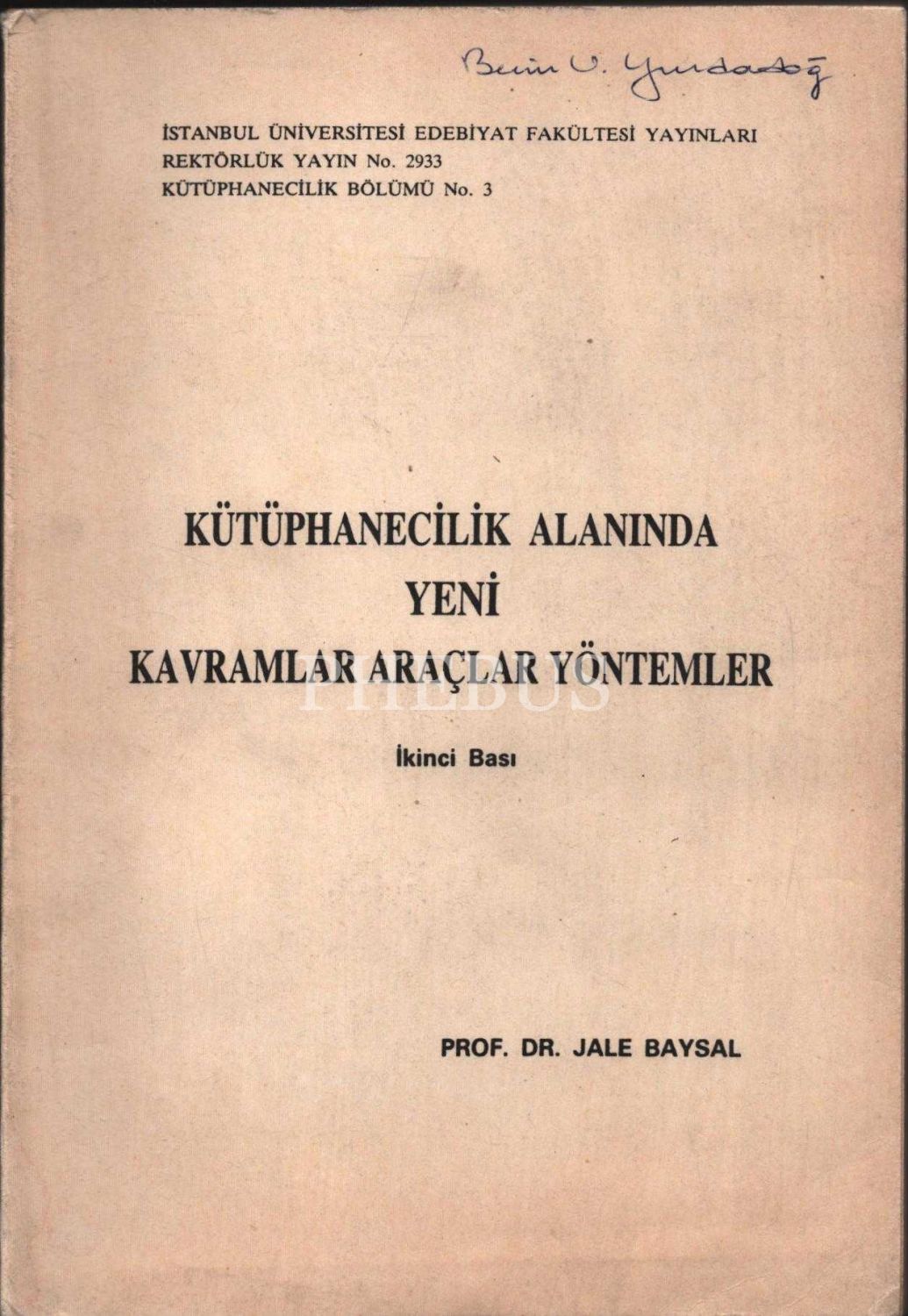 KÜTÜPHANECİLİK ALANINDA YENİ KAVRAMLAR, ARAÇLAR, YÖNTEMLER, Jale Baysal, İstanbul Üniversitesi Edebiyat Fakültesi Yayınları, 1987, 220 sayfa, 16x23 cm, İTHAFLI VE İMZALI