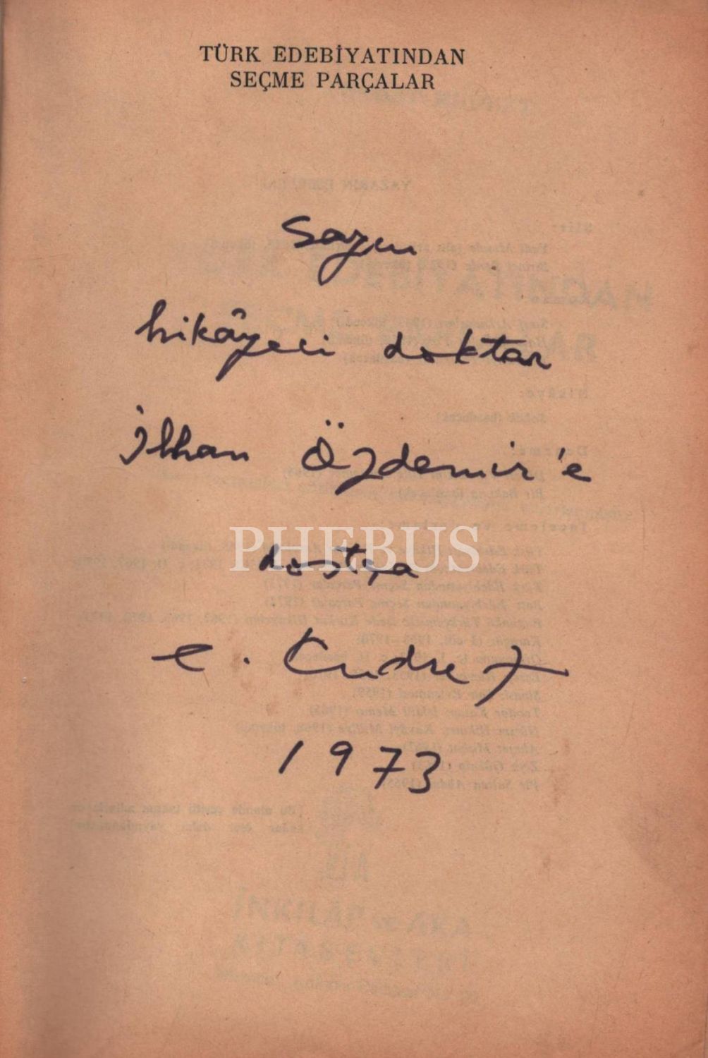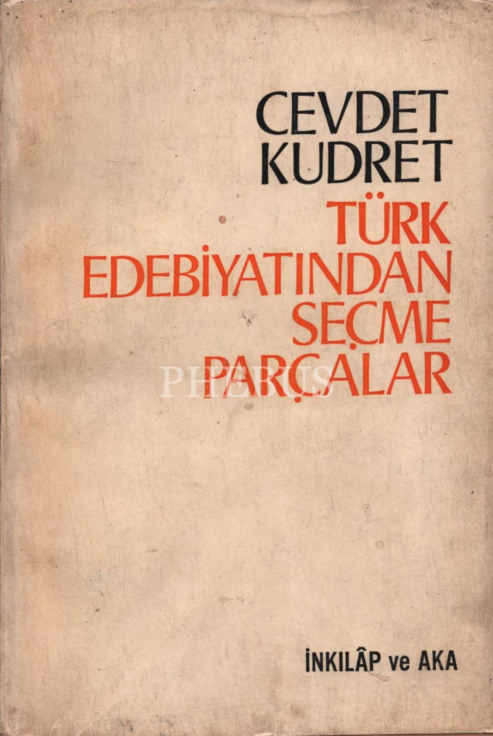 TÜRK EDEBİYATINDAN SEÇME PARÇALAR, Cevdet Kudret, İnkılâp ve Aka Kitabevleri, İstanbul - 1973, 576 sayfa, 16x24 cm, İTHAFLI VE İMZALI