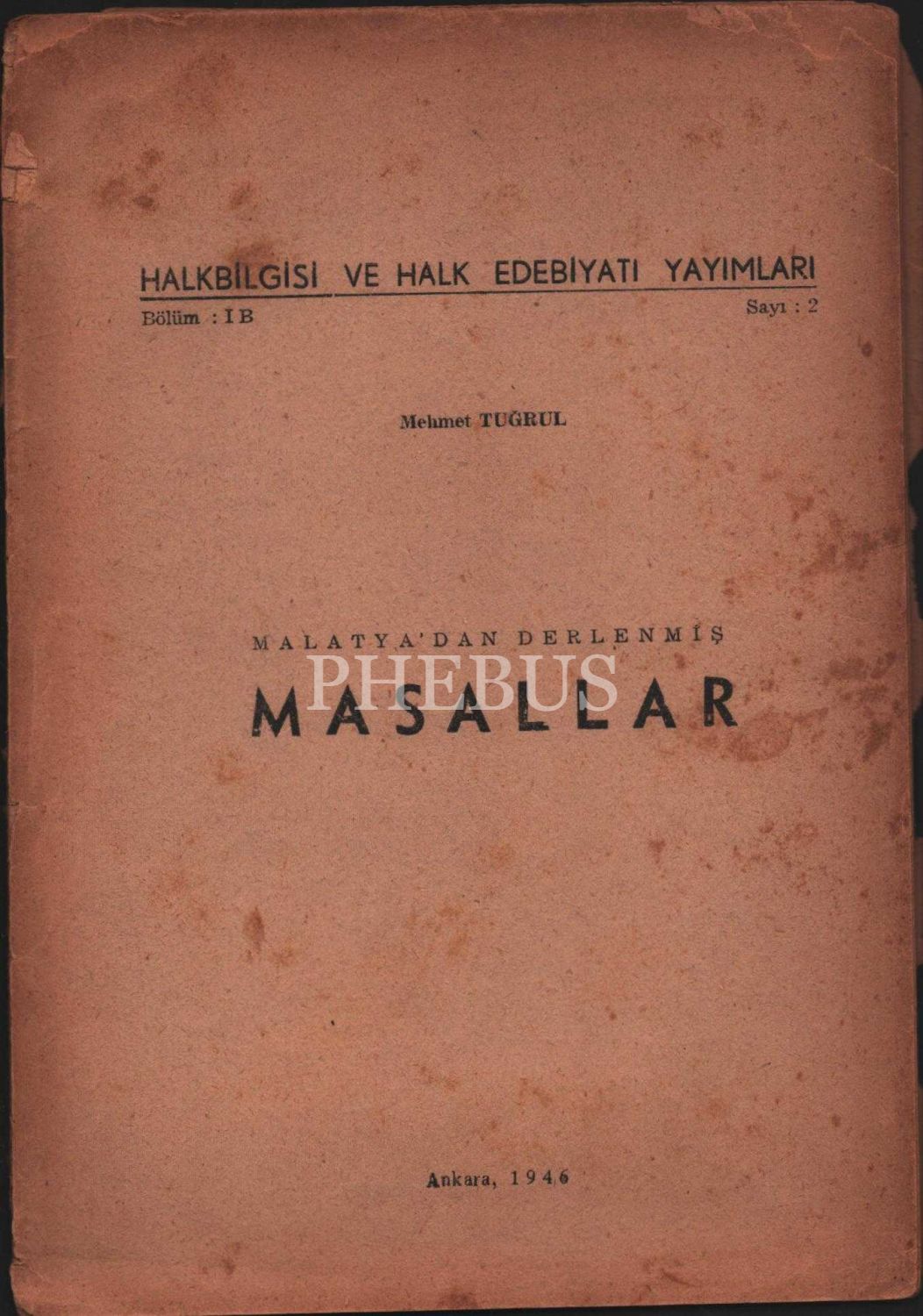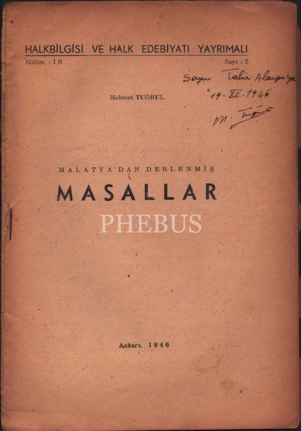 Malatya´dan Derlenmiş MASALLAR, Mehmet Tuğrul, Halkbilgisi ve Halk Edebiyatı Yayımları (Sayı: 2), Mehmet Tuğrul, Ankara - 1946, 40 sayfa, 17x24 cm, Tahir Alangu'ya İTHAFLI VE İMZALI