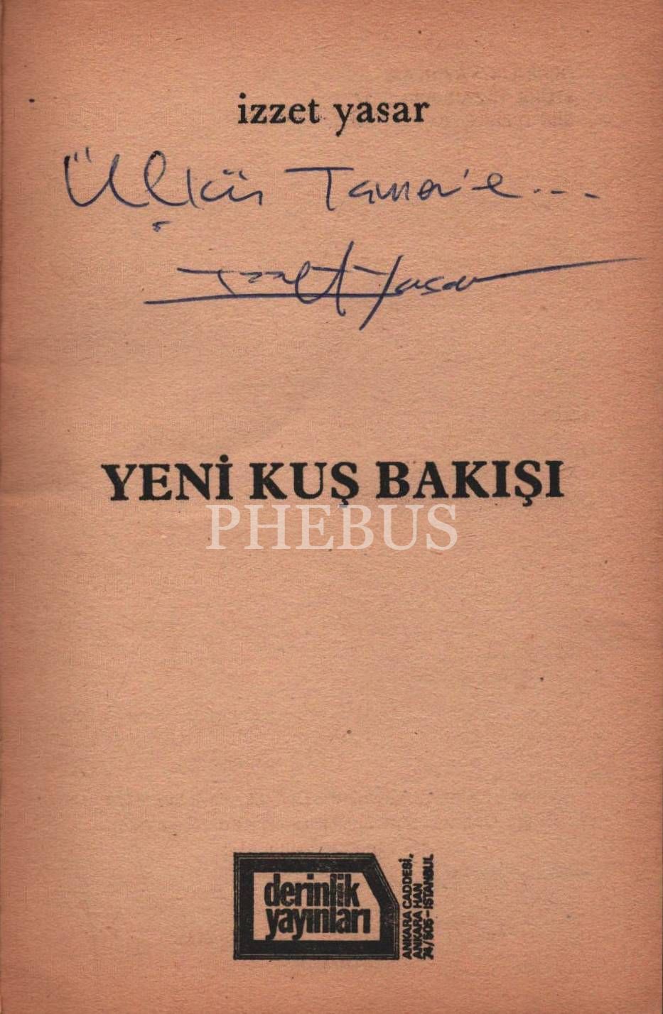 YENİ KUŞ BAKIŞI, İzzet Yaşar, Derinlik Yayınları, Aralık 1973, 62 sayfa, 12x19 cm, Ülkü Tamer'e İTHAFLI VE İMZALI