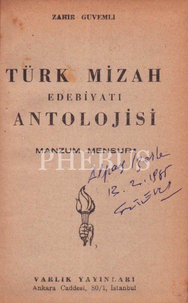 TÜRK MİZAH EDEBİYATI ANTOLOJİSİ (Manzum-Mensur), Zahir Güvemli, Varlık Yayınları, Şubat 1949, 142 sayfa, 12x17 cm, İTHAFLI VE İMZALI