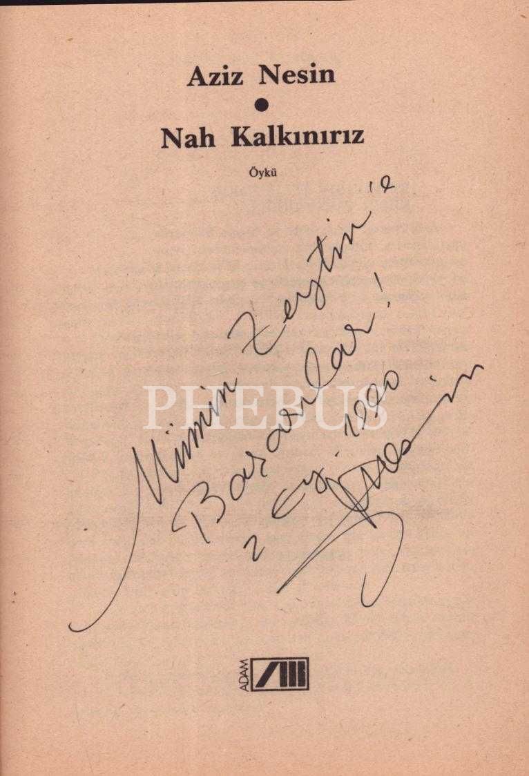 NAH KALKINIRIZ (Öykü), Aziz Nesin, Adam Yayınları, Aralık 1989, 157 sayfa, 14x20 cm, İTHAFLI VE İMZALI