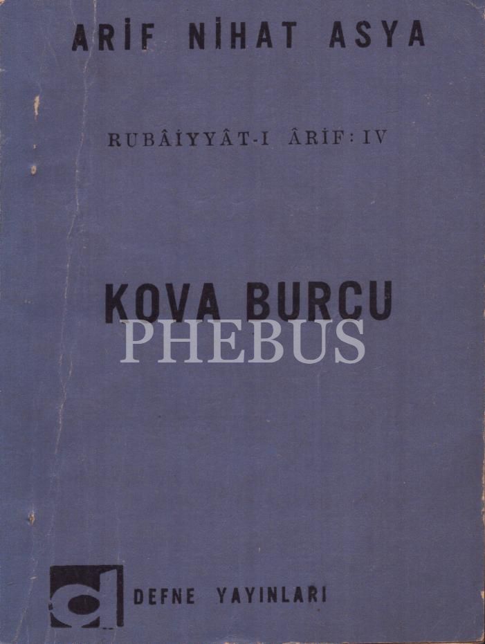 Rubâiyyât-ı Ârif IV: KOVA BURCU, Arif Nihat Asya, Defne Yayınları, Ankara - 1967, 172 sayfa, 12x16 cm, İTHAFLI VE İMZALI