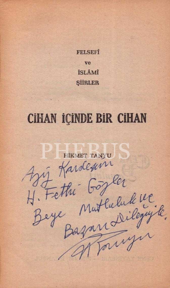 CİHAN İÇİNDE BİR CİHAN (Felsefî ve İslâmî Şiirler), Hikmet Tanyu, Cenk Yayınları, 112 sayfa, 12x20 cm, İTHAFLI VE İMZALI