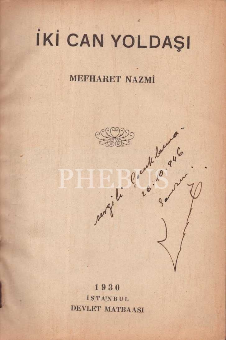 İKİ CAN YOLDAŞI, Frances Hodgon Burnett, çeviren: Mefharet Nazmi, Devlet Matbaası, İstanbul - 1930, 206 sayfa, 13x19 cm, çevirmeninden İTHAFLI VE İMZALI