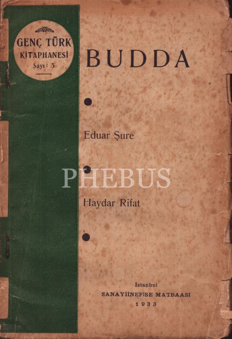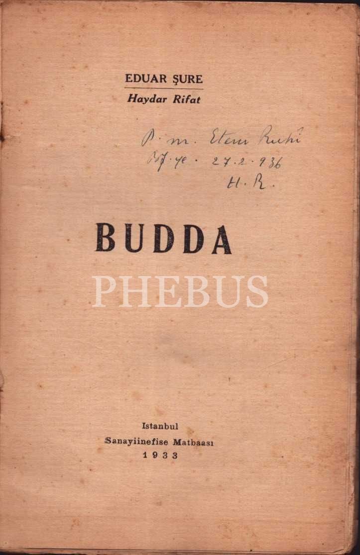 BUDDA, Eduar Şure, çeviren: Haydar Rifat, Sanayiinefise Matbaası, İstanbul - 1933, 87 sayfa, 13x19 cm, çevirmeninden Ethem Ruhi Üngör'e İTHAFLI VE İMZALI