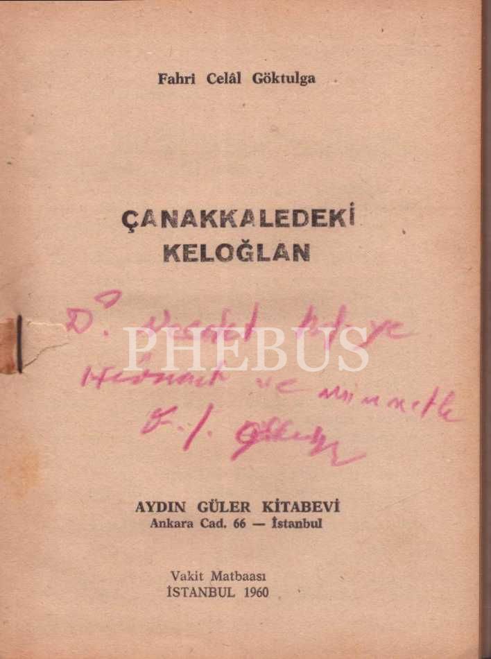 ÇANAKKALEDEKİ KELOĞLAN, Fahri Celâl Göktulga, Aydın Güler Kitabevi, İstanbul - 1960, 69 sayfa, 12x17 cm, İTHAFLI VE İMZALI
