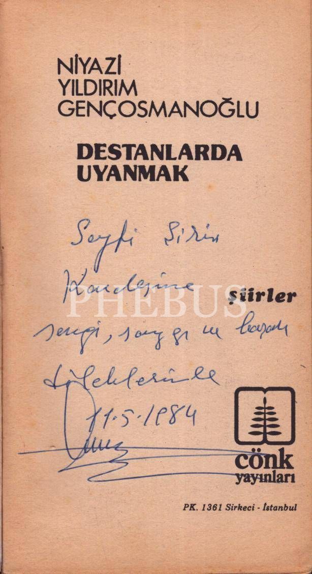 İthaf, "Seyfi Şirin Kardeşime sevgi, saygı ve başarı dileklerimle. 11.5.1984 Niyazi" şeklindedir.