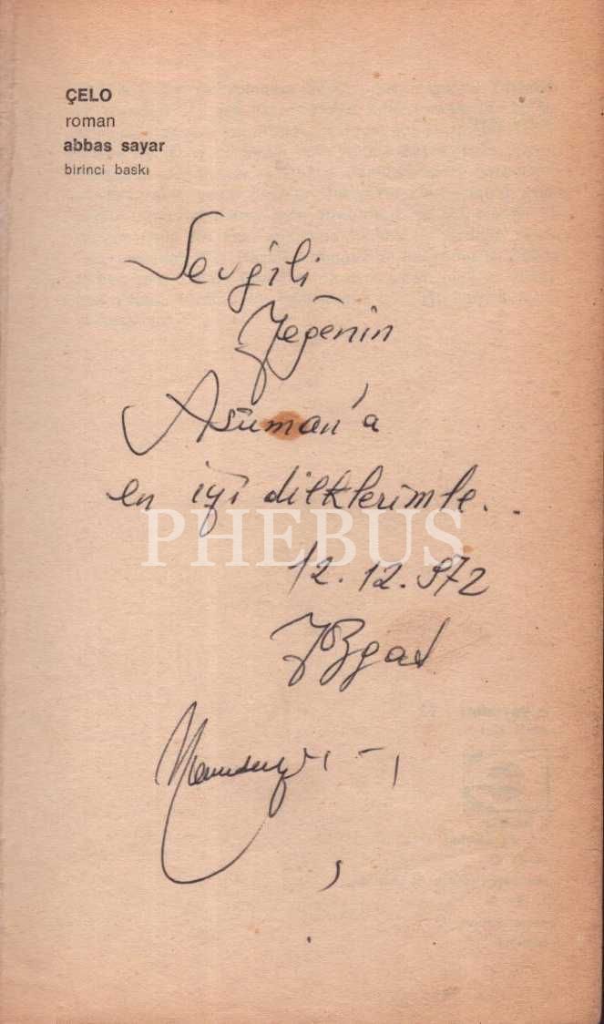 ÇELO (Roman), Abbas Sayar, E Yayınları, 1972, 233 sayfa, 12x20 cm, İTHAFLI VE İMZALI