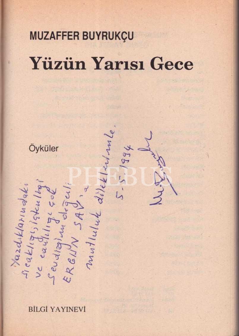 YÜZÜN YARISI GECE (Öyküler), Muzaffer Buyrukçu, Bilgi Yayınevi, Mart 1994, 249 sayfa, 14x20 cm, Ergun Sav'a İTHAFLI VE İMZALI