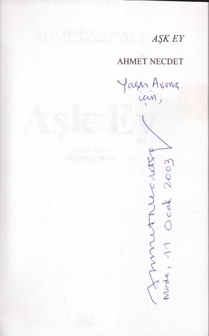 AŞK EY (Şiirler), Ahmet Necdet, Broy Yayınları, Mayıs 2001, 64 sayfa, 13x20 cm, Yaşar Avunç'a İTHAFLI VE İMZALI
