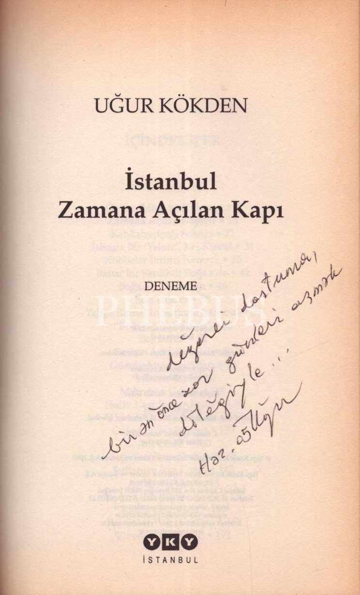İSTANBUL: ZAMANA AÇILAN KAPI (Deneme), Uğur Kökden, Yapı Kredi Yayınları, İstanbul - Mayıs 2005, 177 sayfa, 14x21 cm, İTHAFLI VE İMZALI