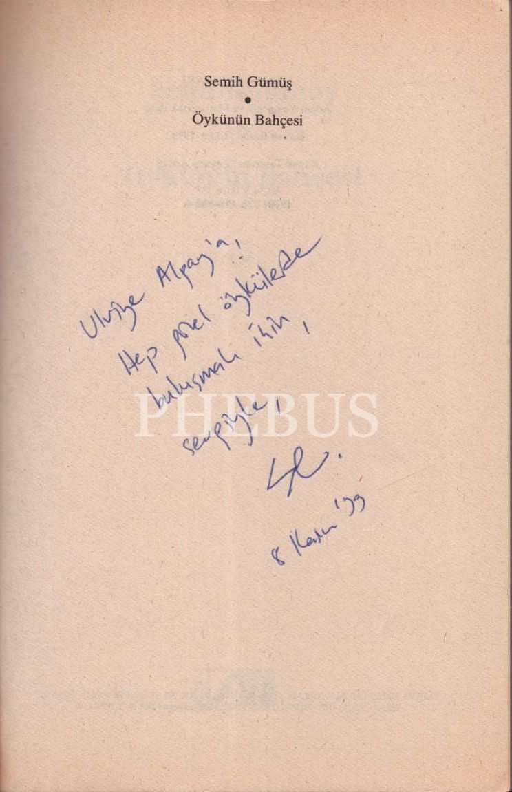 İthaf, "Ulviye Alpay´a, Hep güzel öykülerde buluşmak için, sevgiyle, S.G. 8 Kasım ´99" şeklindedir.