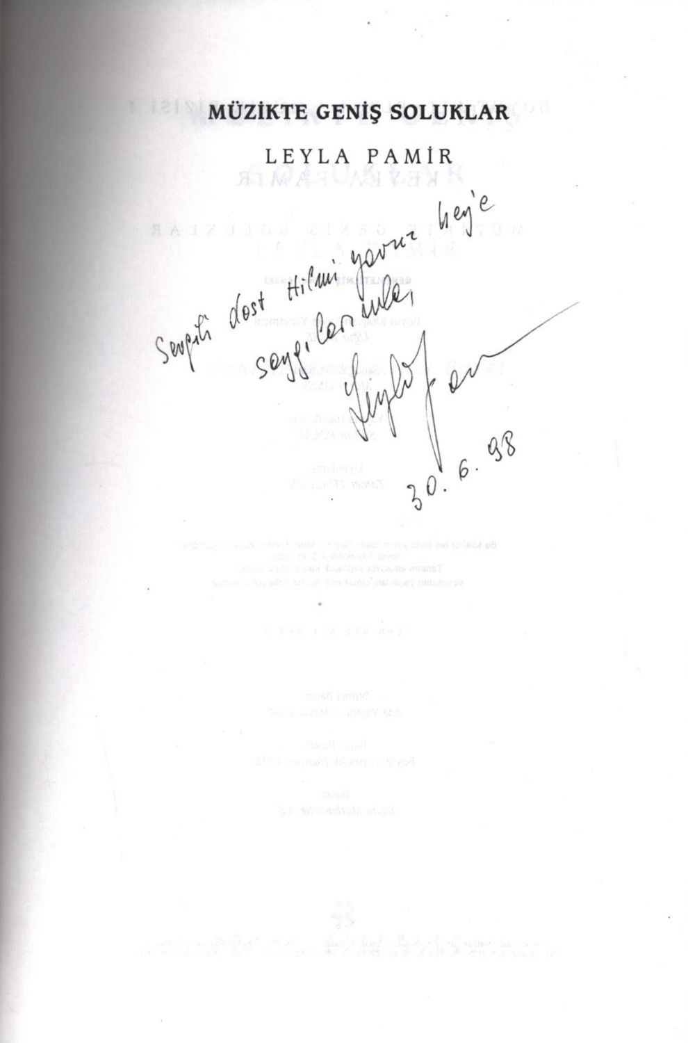 MÜZİKTE GENİŞ SOLUKLAR, Leyla Pamir, Boyut Kitapları, Haziran 1998, 438 sayfa, 16x23 cm, Hilmi Yavuz'a İTHAFLI VE İMZALI