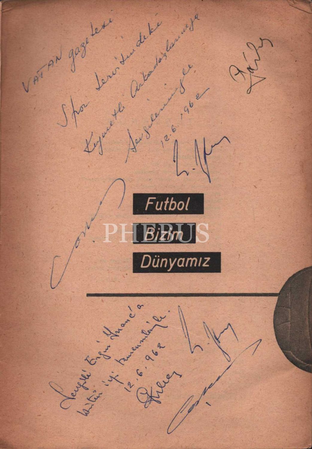 FUTBOL BİZİM DÜNYAMIZ, Gündüz Kılıç, Eşfak Aykaç, Coşkun Özarı, Doğan Kardeş Yayınları A.Ş. Basımevi, İstanbul - 1962, 182 sayfa metin + görseller, 16x23 cm, üç yazardan İTHAFLI VE İMZALI