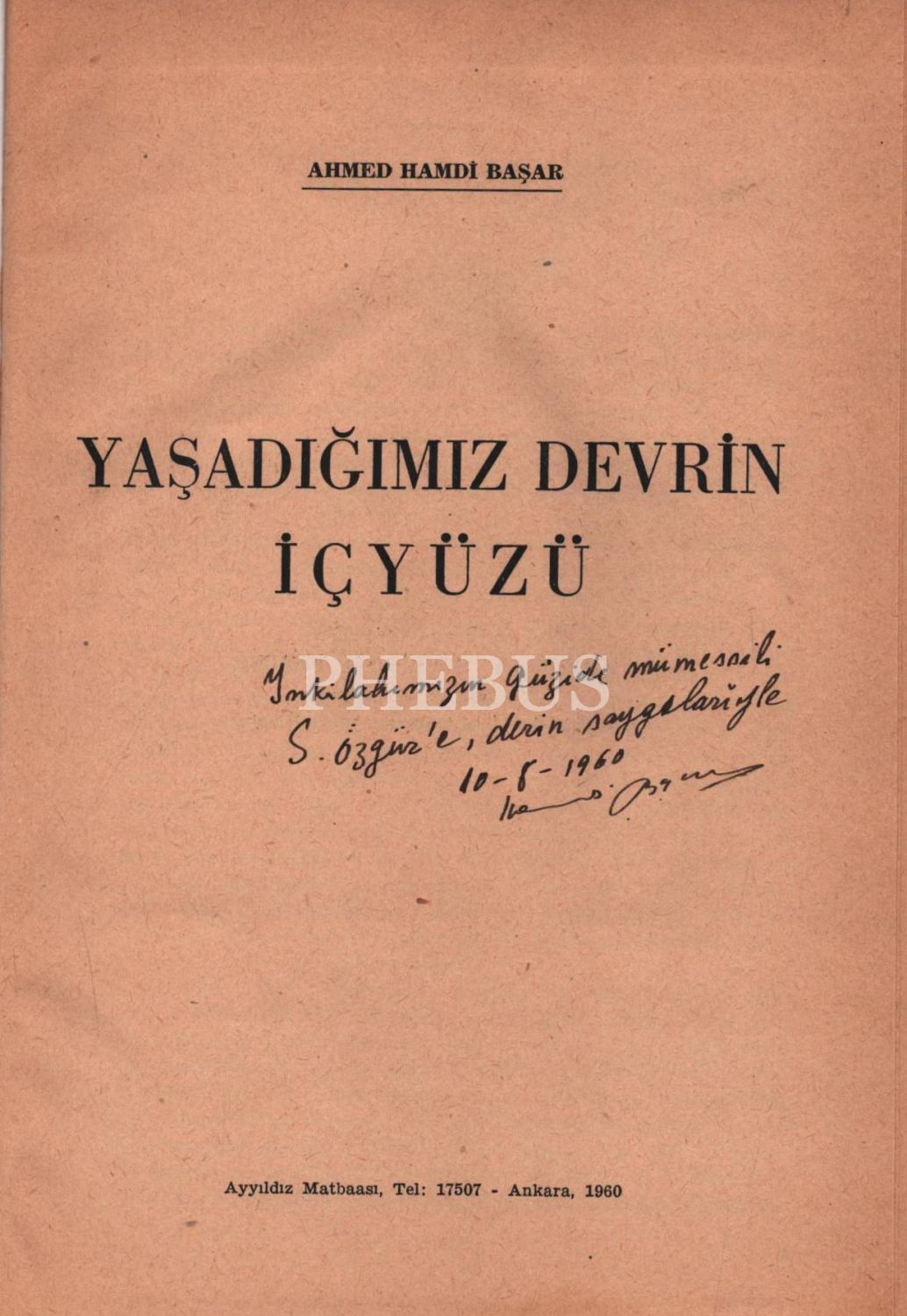 YAŞADIĞIMIZ DEVRİN İÇYÜZÜ, Ahmed Hamdi Başar, Ayyıldız Matbaası, Ankara - 1960, 205 sayfa, 17x24 cm, İTHAFLI VE İMZALI