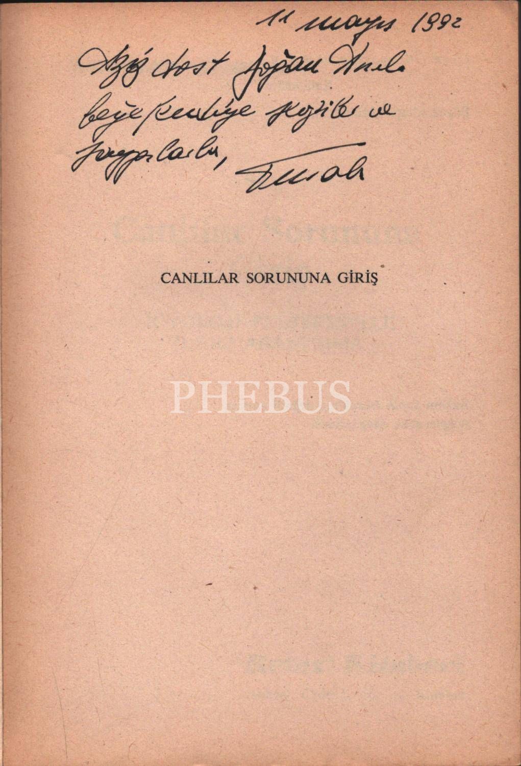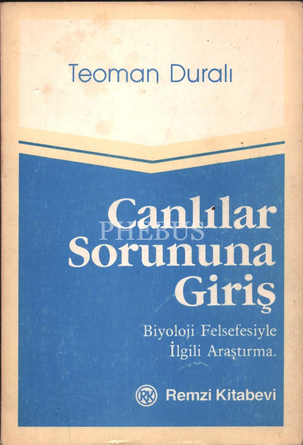 CANLILAR SORUNUNA GİRİŞ (Biyoloji Felsefesiyle İlgili Araştırma), Teoman Duralı, Remzi Kitabevi, İstanbul - 1987, 220 sayfa, 13x19 cm, İTHAFLI VE İMZALI