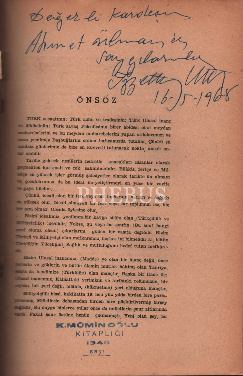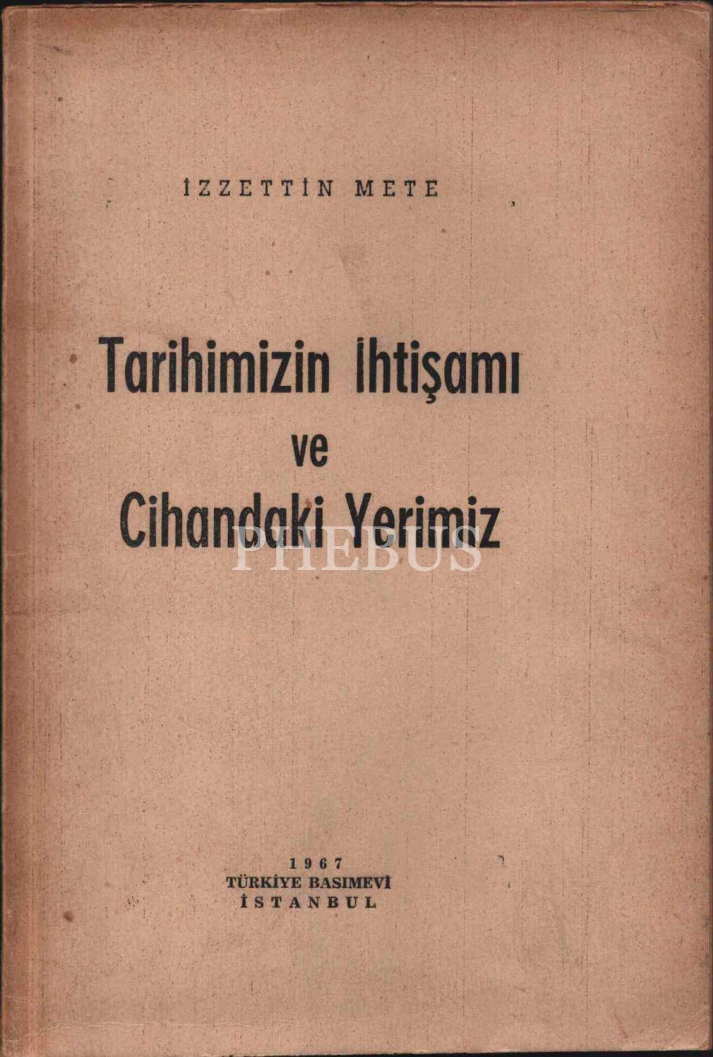 TARİHİMİZİN İHTİŞAMI VE CİHANDAKİ YERİMİZ, İzzettin Mete, Türkiye Basımevi, İstanbul - 1967, 144 sayfa, 17x25 cm, İTHAFLI VE İMZALI