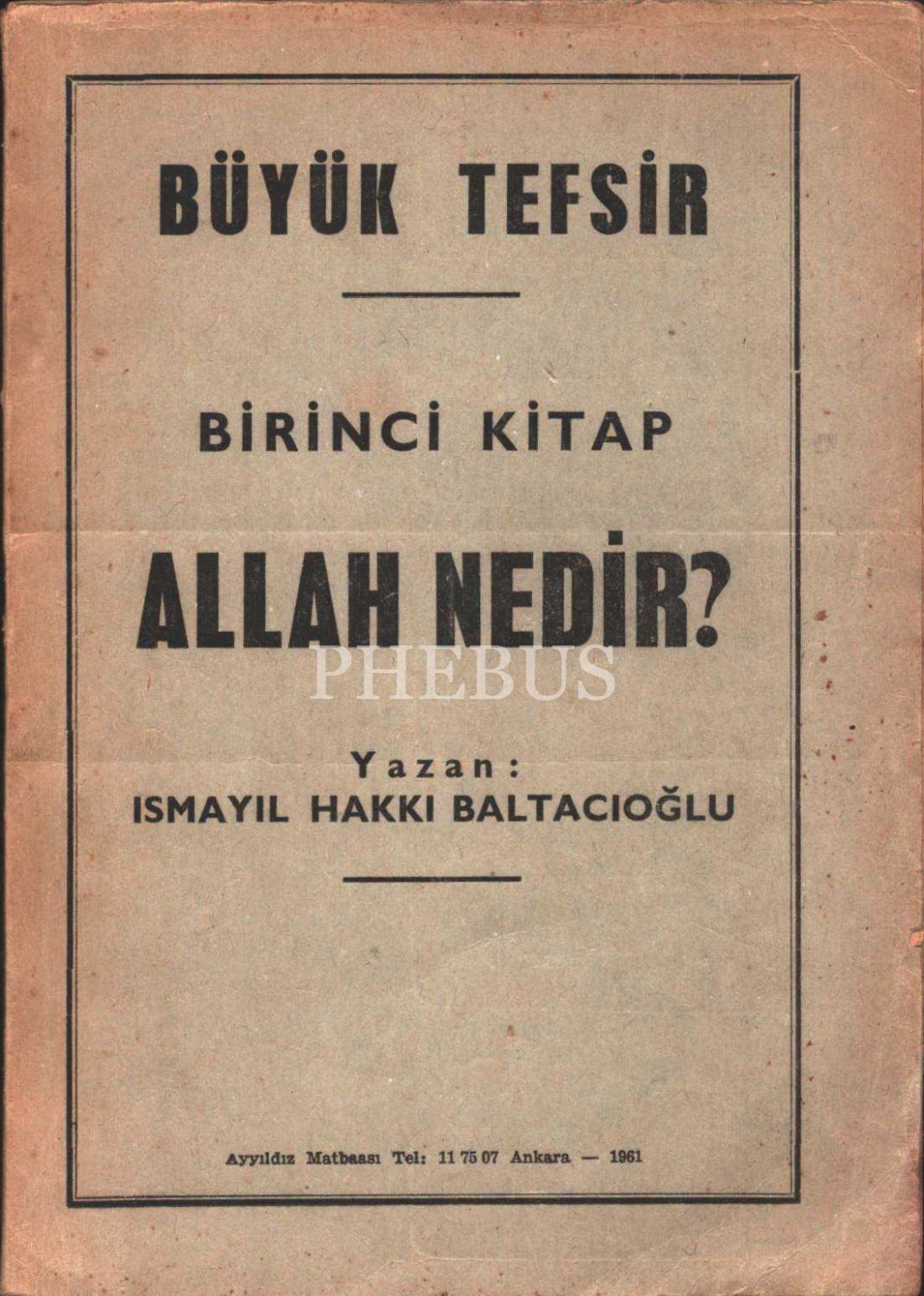 BÜYÜK TEFSİR - Birinci Kitap: ALLAH NEDİR?, Ismayıl Hakkı Baltacıoğlu, Ayyıldız Matbaası, Ankara - 1961, 187 sayfa, 14x20 cm, İTHAFLI VE İMZALI