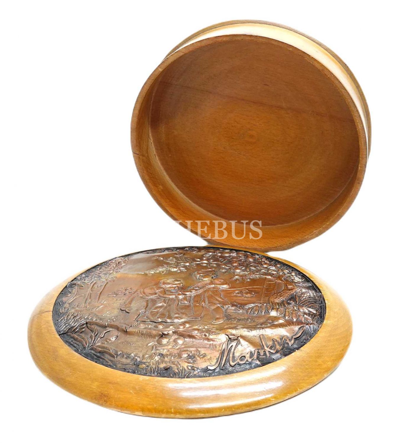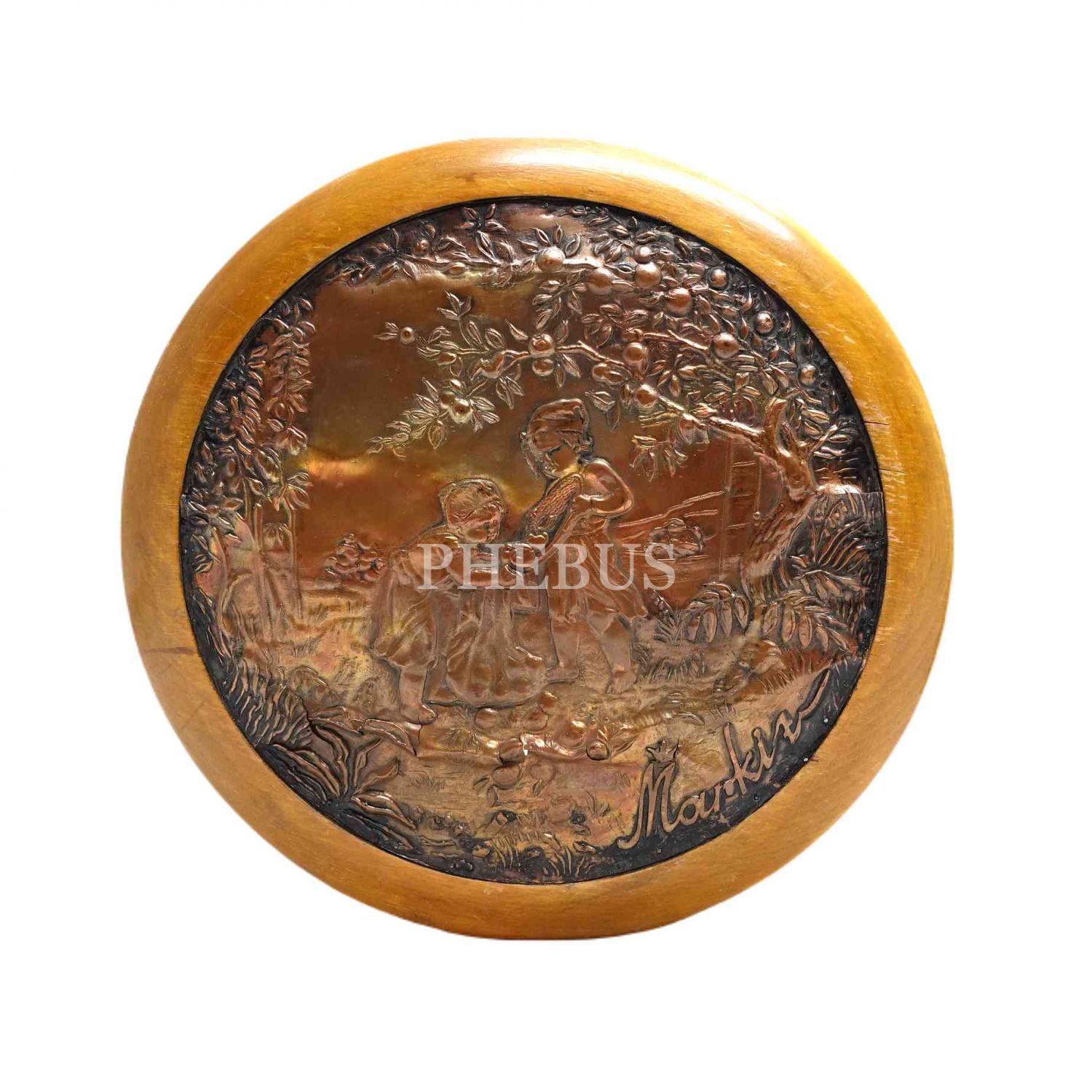 Bakır rölyef kapaklı ve "MARKİZ" yazılı ahşap şekerleme kutusu, 25x6 cm