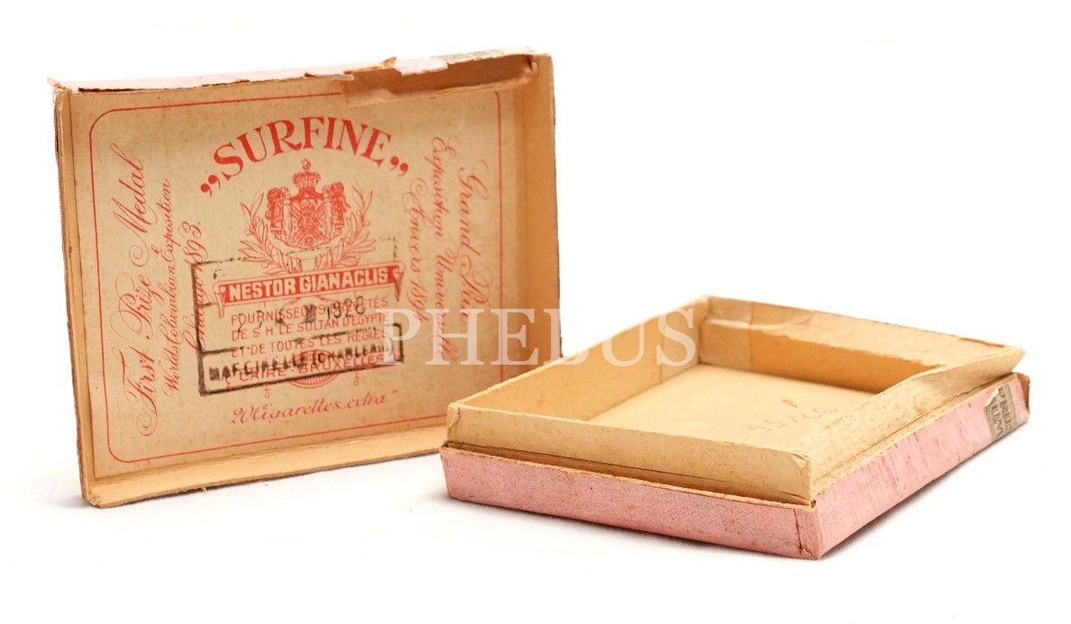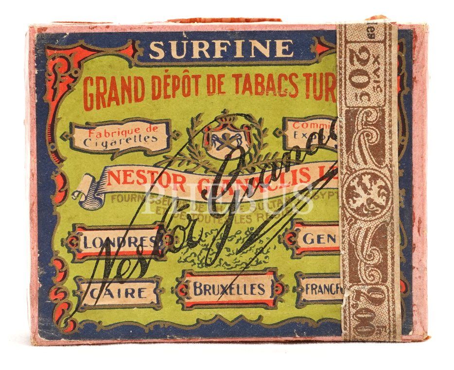 "SURFINE (GRAND DEPOT DE TABACS TURC)" yazılı karton sigara kutusu, 9x8x2 cm