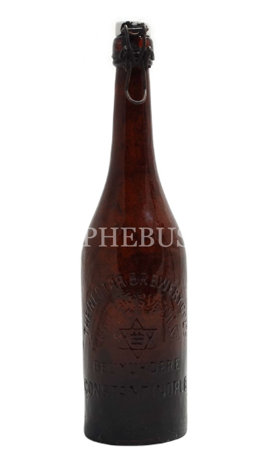 Osmanlıca-Fransızca "THE NECTAR BREWERY CO. LTD. - BEUYUKDERE - CONSTANTINOPLE" kabartma yazılı, porselen kapaklı bira şişesi, 30x7 cm