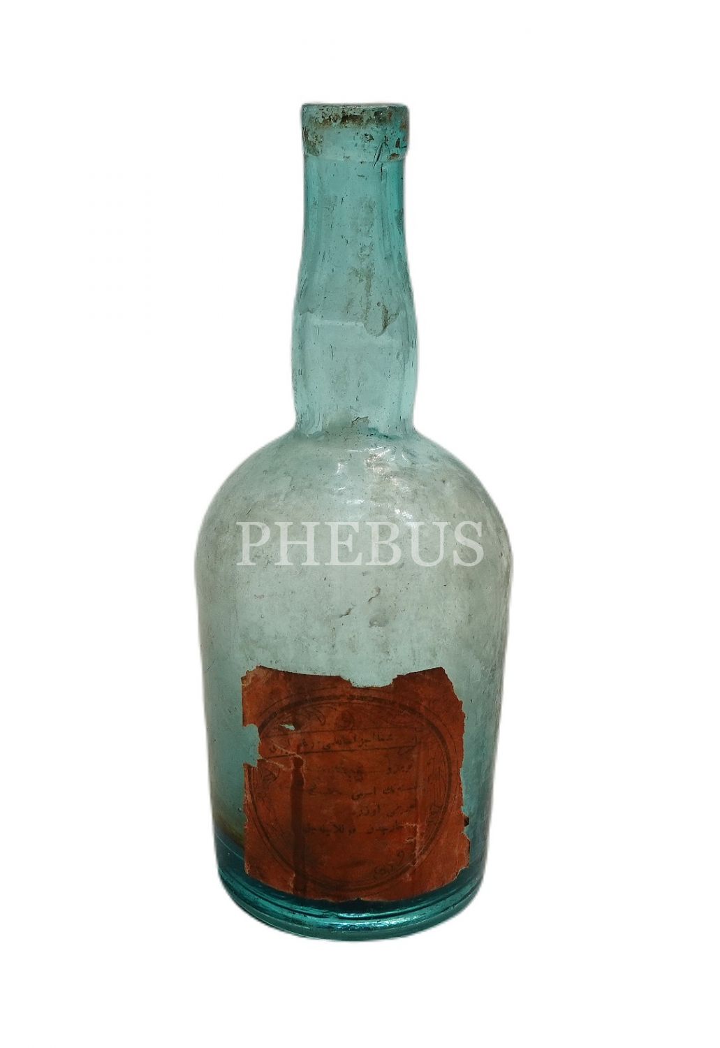 Şişe dibi kabartma "FARMACIA SERRAVALLO, TRIESTE" yazılı, Osmanlıca etiketli kuvvet şurubu, 22x8 cm