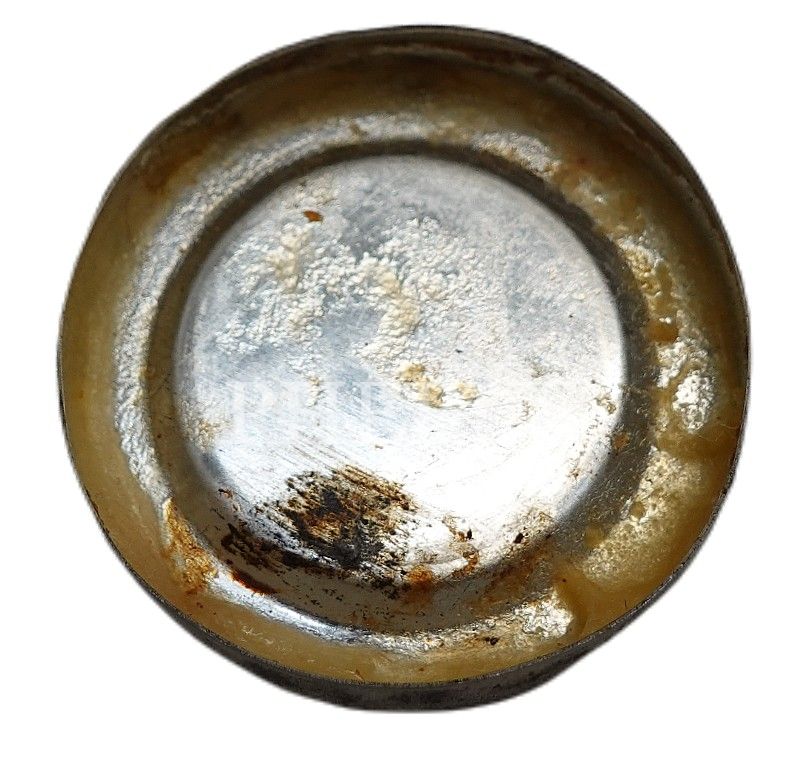 Boş kutu. Teneke kutunun bir köşesi kırık haliyle.