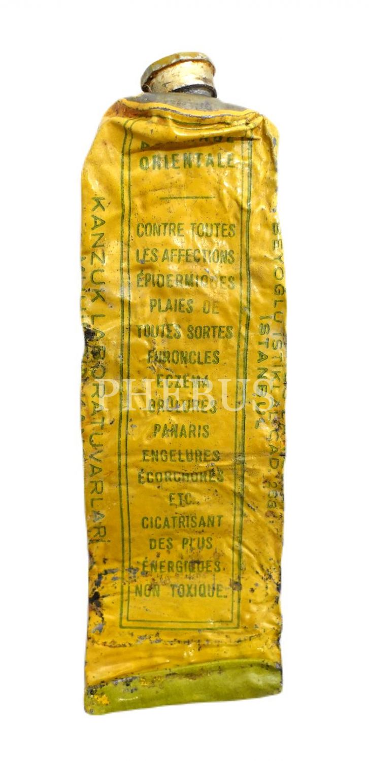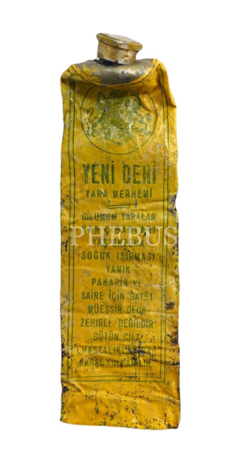 Türkçe -Fransızca açıklamalı "YENİ DERİ Yara Merhemi" tüpü (boş), 10x3 cm