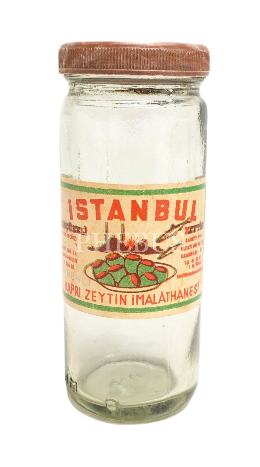 "İSTANBUL (Ançüezli Zeytin) - KAPRİ ZEYTİN İMALÂTHANESİ" etiketli kavanoz, 14x5 cm
