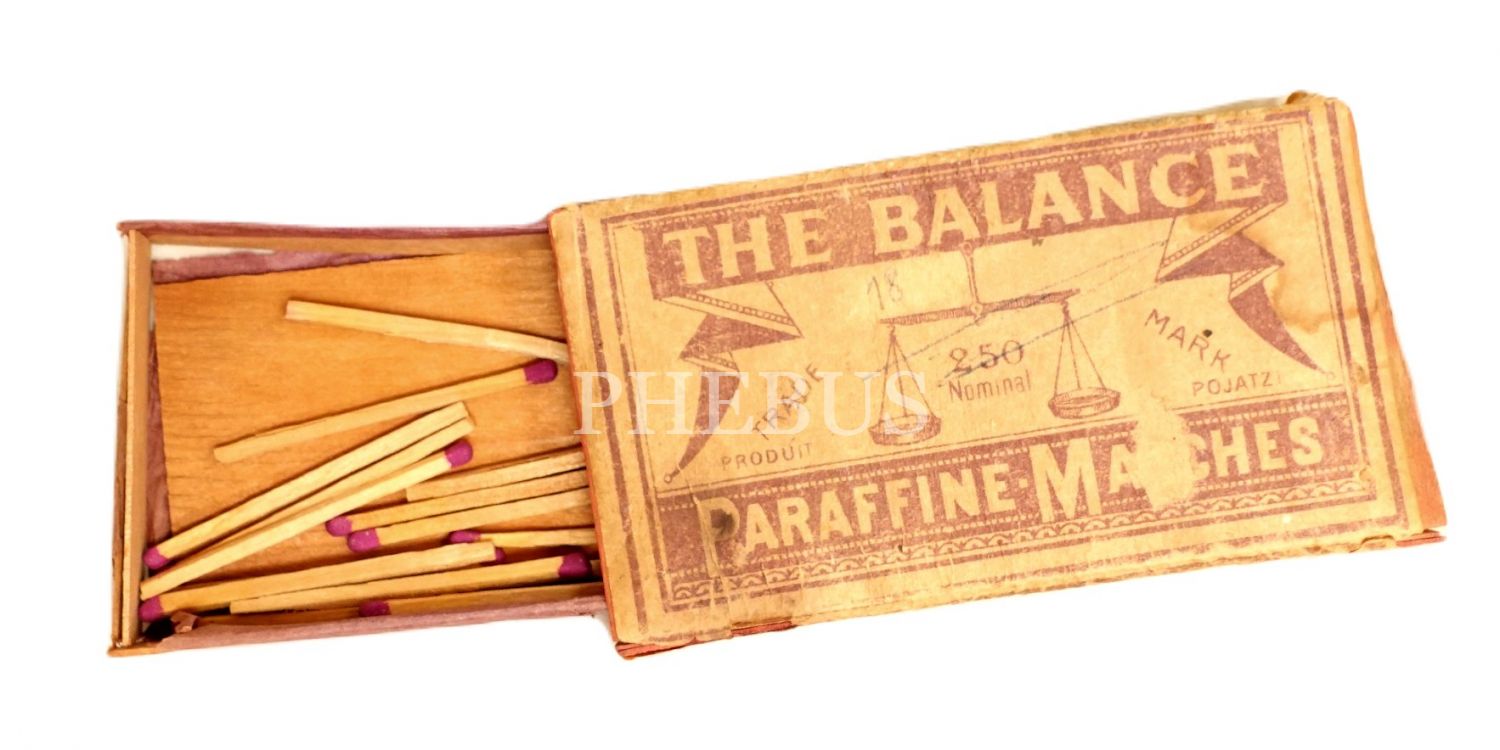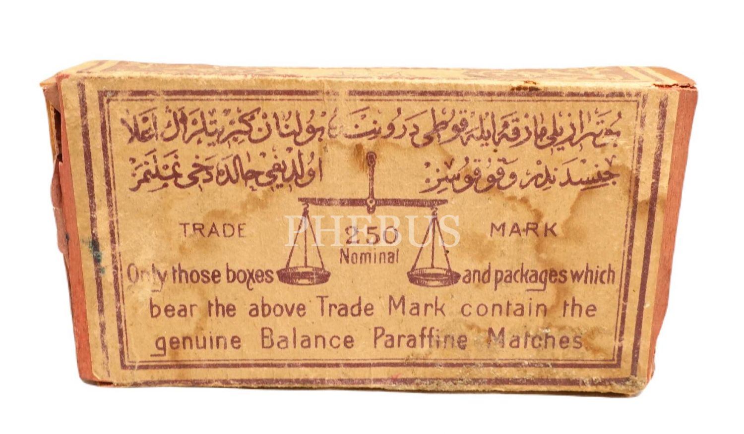 Osmanlıca-Fransızca açıklamalı "THE BALANCE-Parrafine Matches" kibrit kutusu, 12x6x2 cm